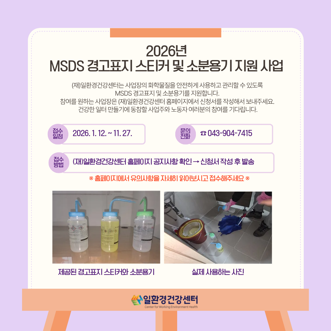 Á¦¸ñ 2026³â MSDS(¹°Áú¾ÈÀüº¸°ÇÀÚ·á) °æ°íÇ¥Áö ½ºÆ¼Ä¿ ¹× ¼ÒºÐ¿ë±â Áö¿ø»ç¾÷