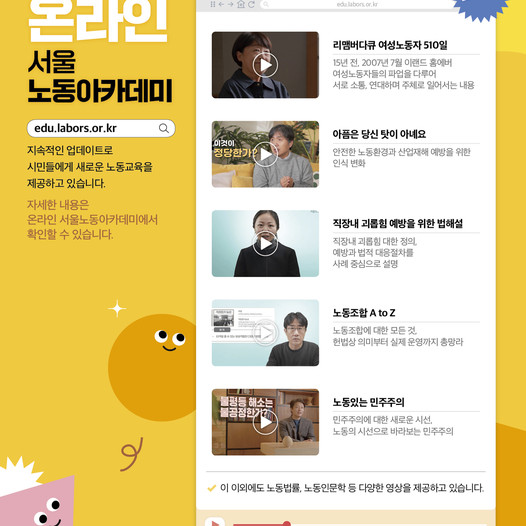 ¾È³çÇϼ¼¿ä? ÀÏȯ°æ°Ç°¼¾ÅÍ ÀÔ´Ï´Ù.¡¸¿Â¶óÀμ¿ï³ëµ¿¾ÆÄ«µ¥¹Ì¡¹¸¦ µé¾îº¸¼Ì³ª¿ä?¡¸¿Â¶óÀμ¿ï³ëµ¿¾ÆÄ«µ¥¹Ì¡¹´Â ¼¿ï³ëµ¿±ÇÀͼ¾ÅͰ¡ Äڷγª À§±â·Î Å« ¾î·Á¿òÀ» °Þ°í ÀÖ´Â ³ëµ¿±³À° ´ë¾ÈÀ» ¸ð»öÇϱâ À§ÇØ ±³À°À» °ü¸®ÇÏ´Â LMS ½Ã½ºÅÛÀ» °³¼³ÇÏ¿© ¿Â¶óÀα³À°À» Á¦°øÇϰíÀÚ ¸¸µç »çÀÌÆ® ÀÔ´Ï´Ù.