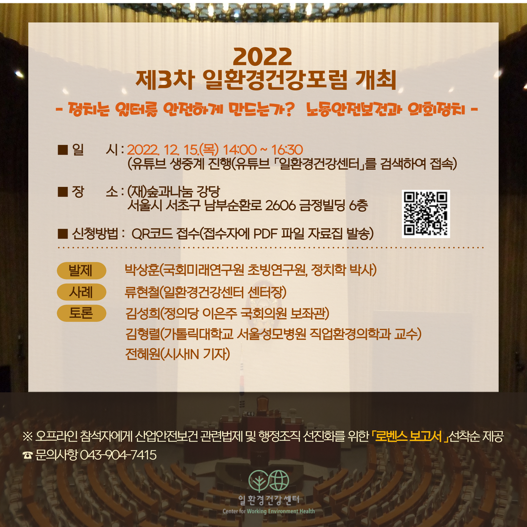 ¾È³çÇϼ¼¿ä ÀÏȯ°æ°Ç°¼¾ÅÍÀÔ´Ï´Ù. Á¦3Â÷ ÀÏȯ°æ°Ç° Æ÷·³ ÀÏÁ¤ ¾È³»µå¸³´Ï´Ù.*Á¦3Â÷ ÀÏȯ°æ°Ç°Æ÷·³*ÀϽà : 12¿ù 15ÀÏ(¸ñ) 14:00Àå¼Ò : Àç´Ü¹ýÀÎ ½£°ú³ª´® °´ç(¼¿ï½Ã ¼Ãʱ¸ ³²ºÎ¼øÈ¯·Î 2606, ±ÝÁ¤ºôµù 6Ãþ)- Âü¼®ÀÌ ¾î·Á¿ì½Å ºÐµéÀº À¯Æ©ºê¸¦ ÅëÇØ ½Ç½Ã°£À¸·Î ÇÔ²² ÇÏ½Ç ¼ö ÀÖ¾î¿ä!- QRÄÚµå·Î Á¢¼öÇϽøé ÀÚ·áÁýÀ» º¸³»µå¸³´Ï´Ù.(🔻¾Æ·¡ Áּҷεµ Á¢¼ö °¡´É🔻)https://forms.gle/1By2fpjuie1qVGAp7💠¿ÀÇÁ¶óÀÎ Âü¼®ÀÚ¿¡°Ô ¼±Âø¼øÀ¸·Î ·Îº¥½ºº¸°í¼¸¦ Á¦°øÇÕ´Ï´Ù.💠ÀúÈñ ÀÏȯ°æ°Ç°Æ÷·³Àº ³»³â¿¡µµ °è¼ÓµË´Ï´Ù.