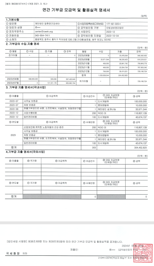 2023 ¿¬°£ ±âºÎ±Ý ¸ð±Ý¾× ¹× Ȱ¿ë½ÇÀû ¸í¼¼¼