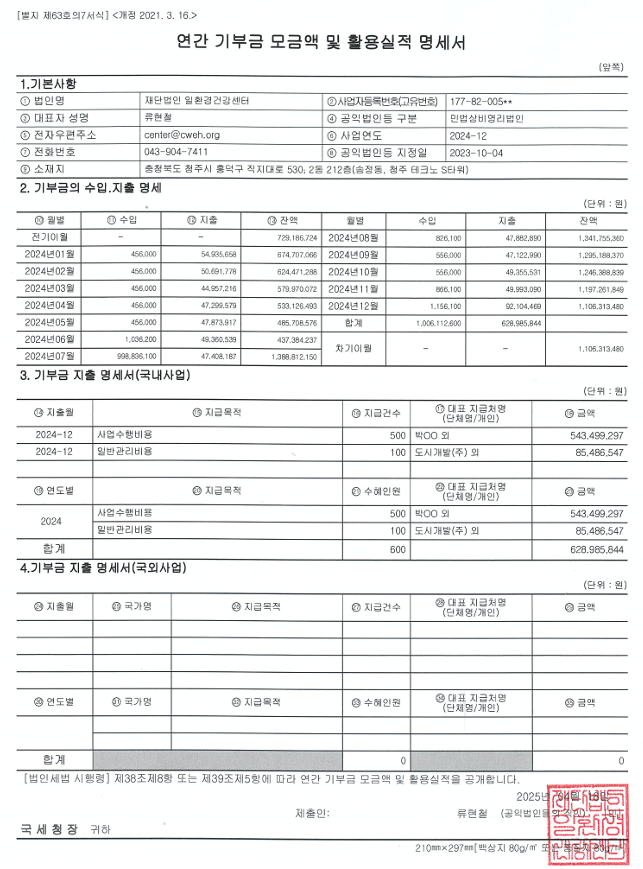 2024 ¿¬°£ ±âºÎ±Ý ¸ð±Ý¾× ¹× Ȱ¿ë½ÇÀû ¸í¼¼¼